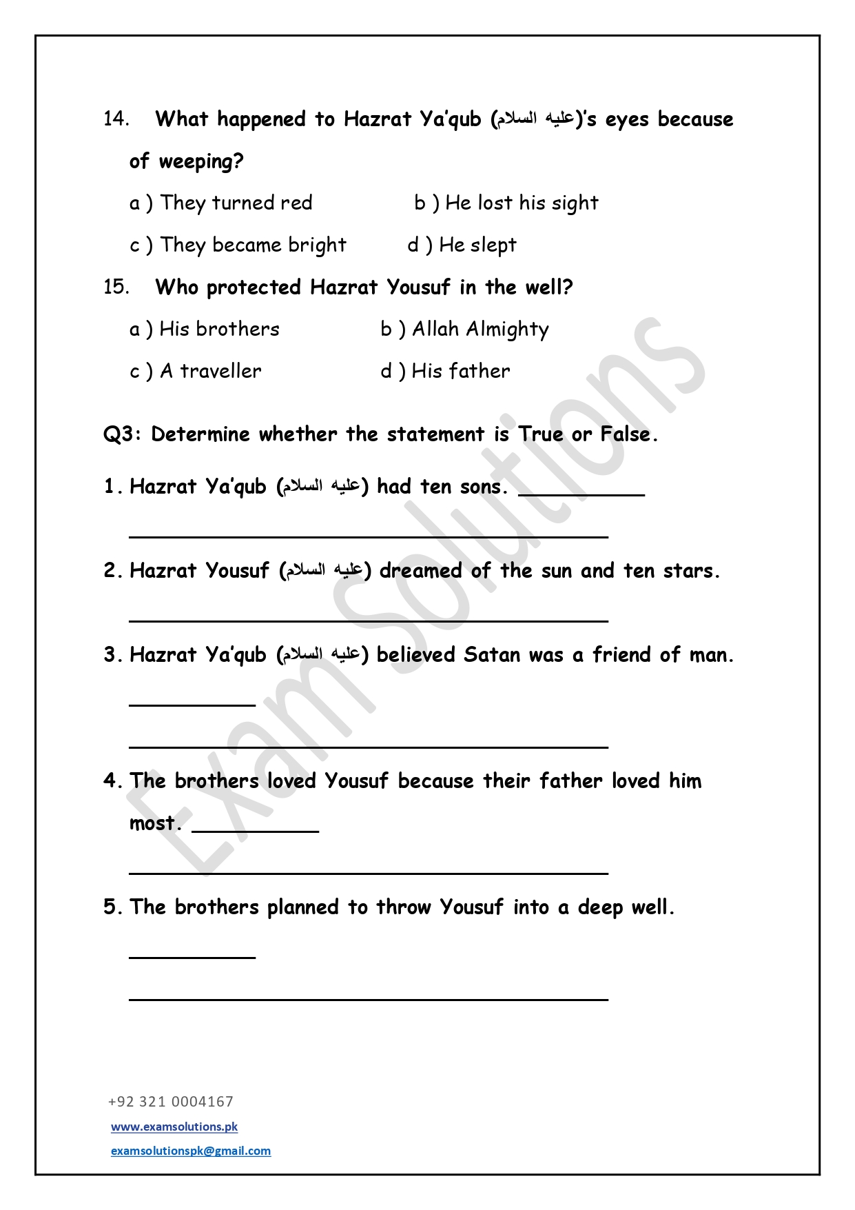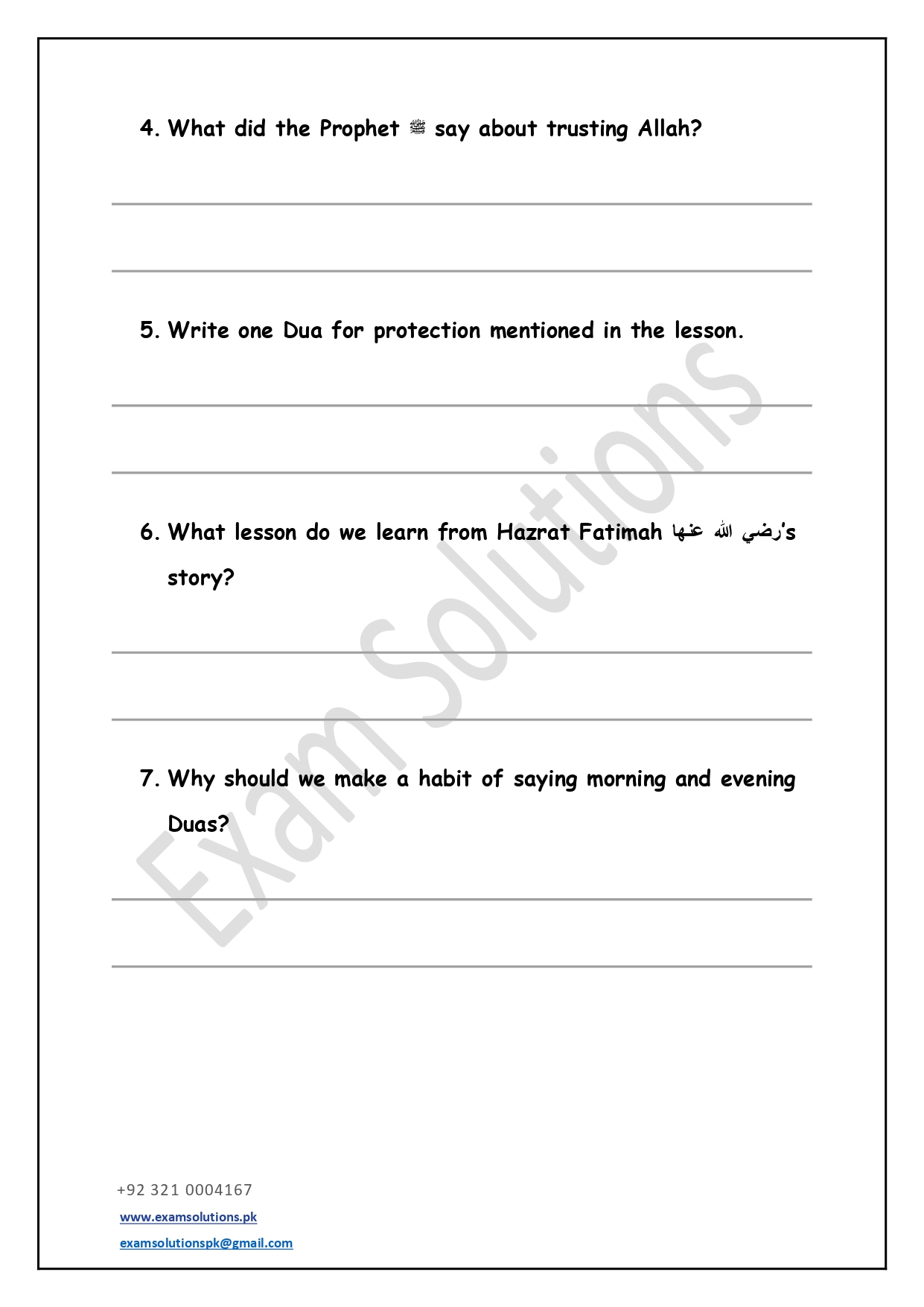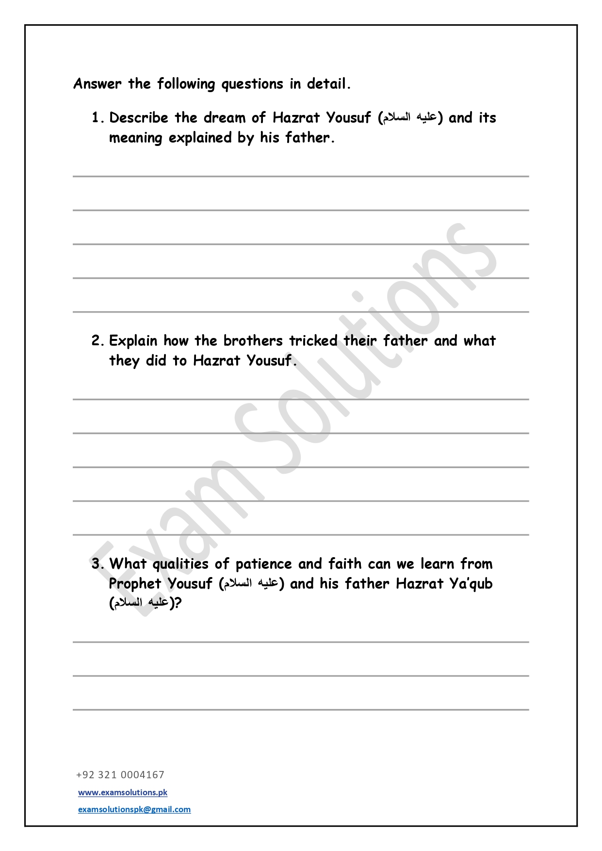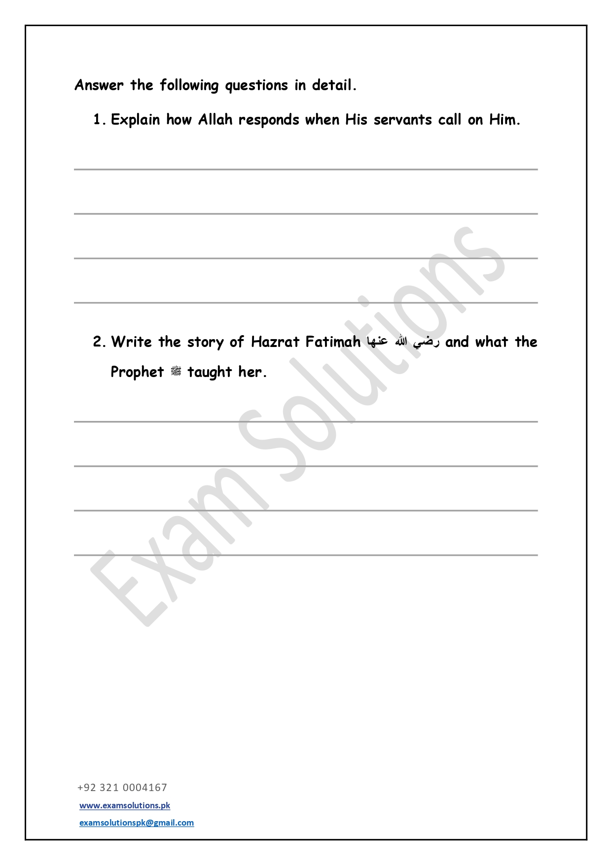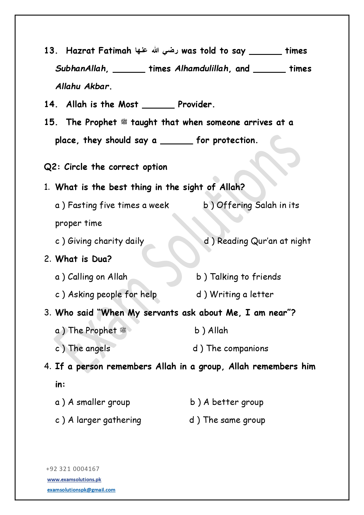 These worksheets are thoughtfully designed in accordance with exam-style question patterns to help students prepare effectively for Islamiat assessments. Each worksheet includes a balanced mix of multiple-choice, short-answer, and long-answer questions based on the Class 5 syllabus. The content promotes a clear understanding of Islamic teachings, values, and history while developing students’ confidence and exam readiness.