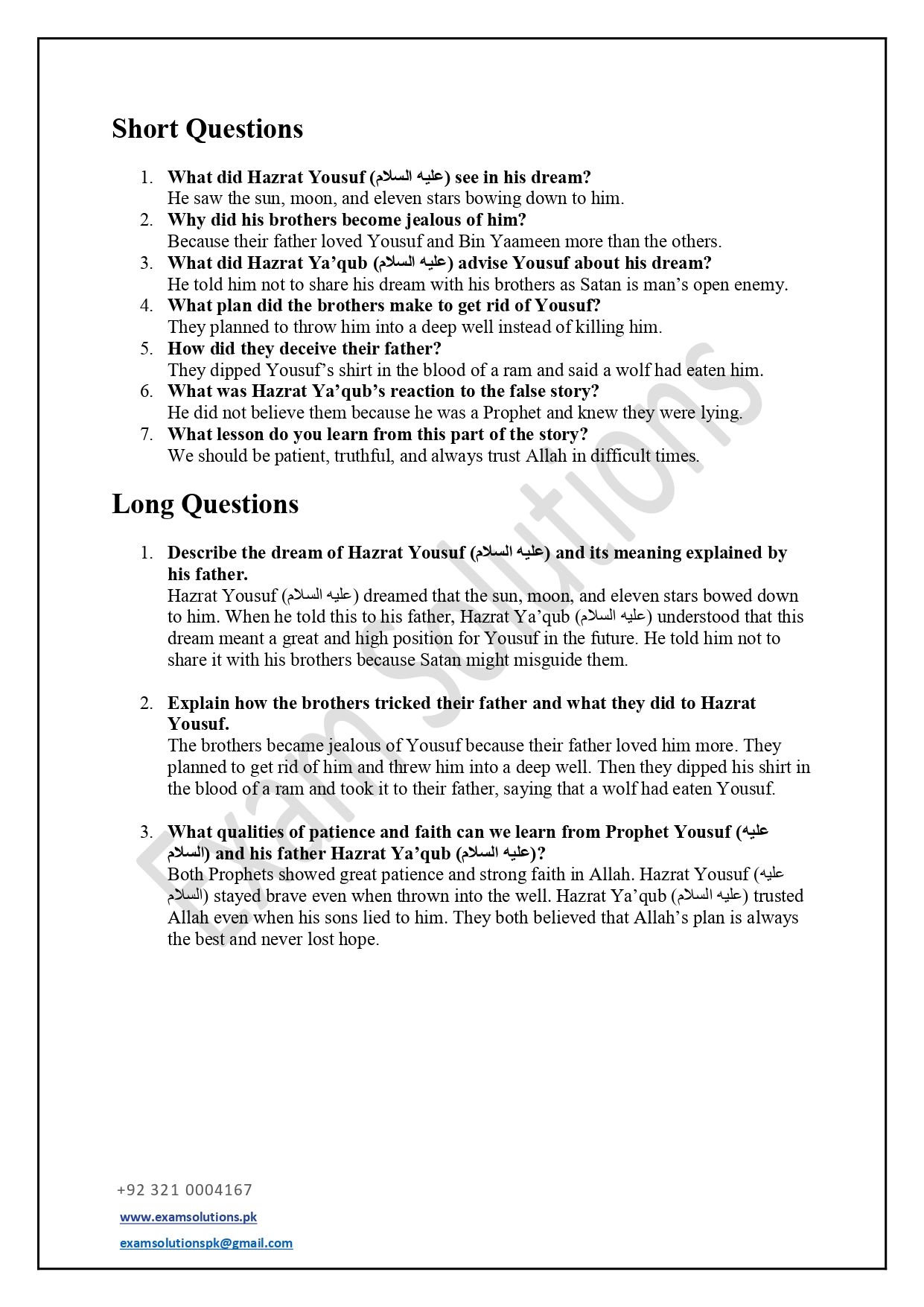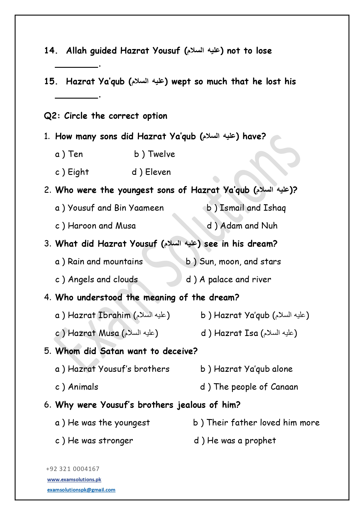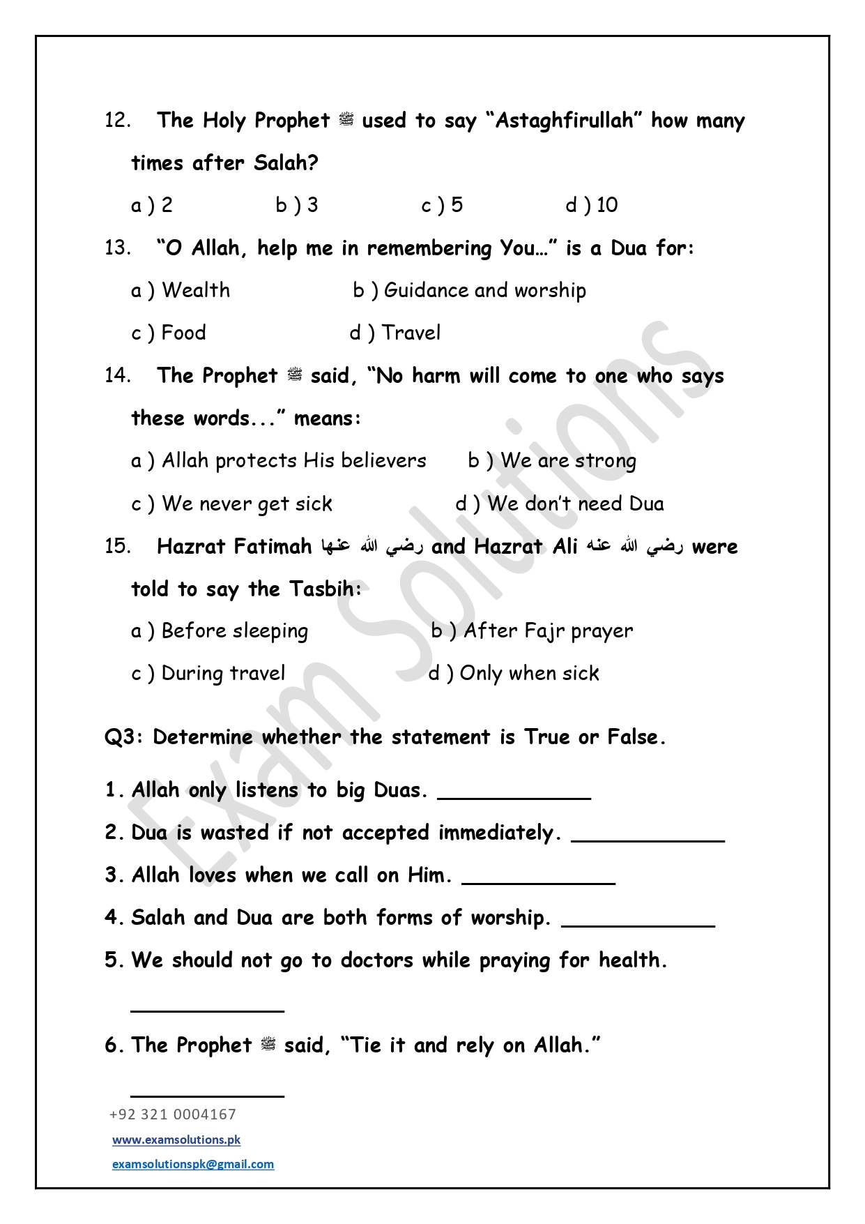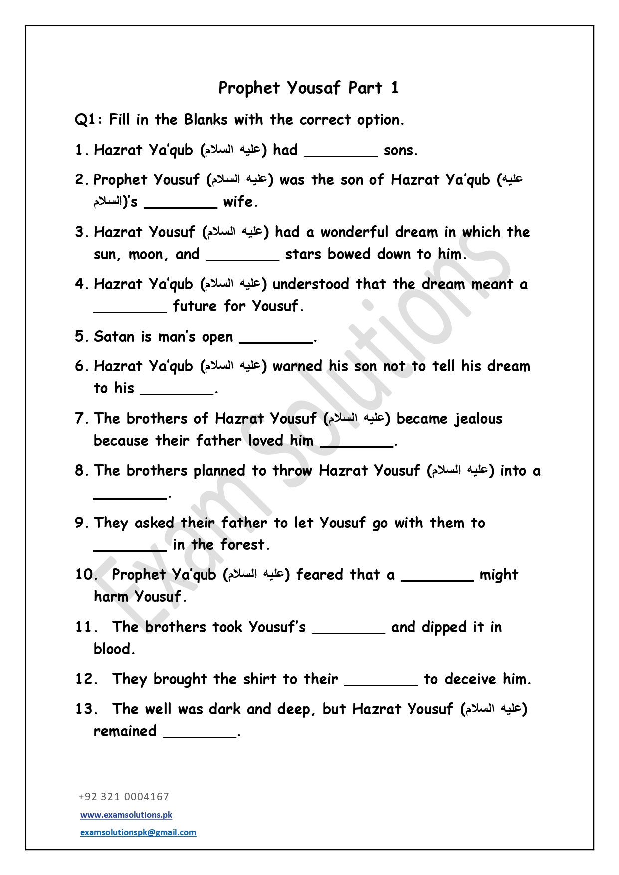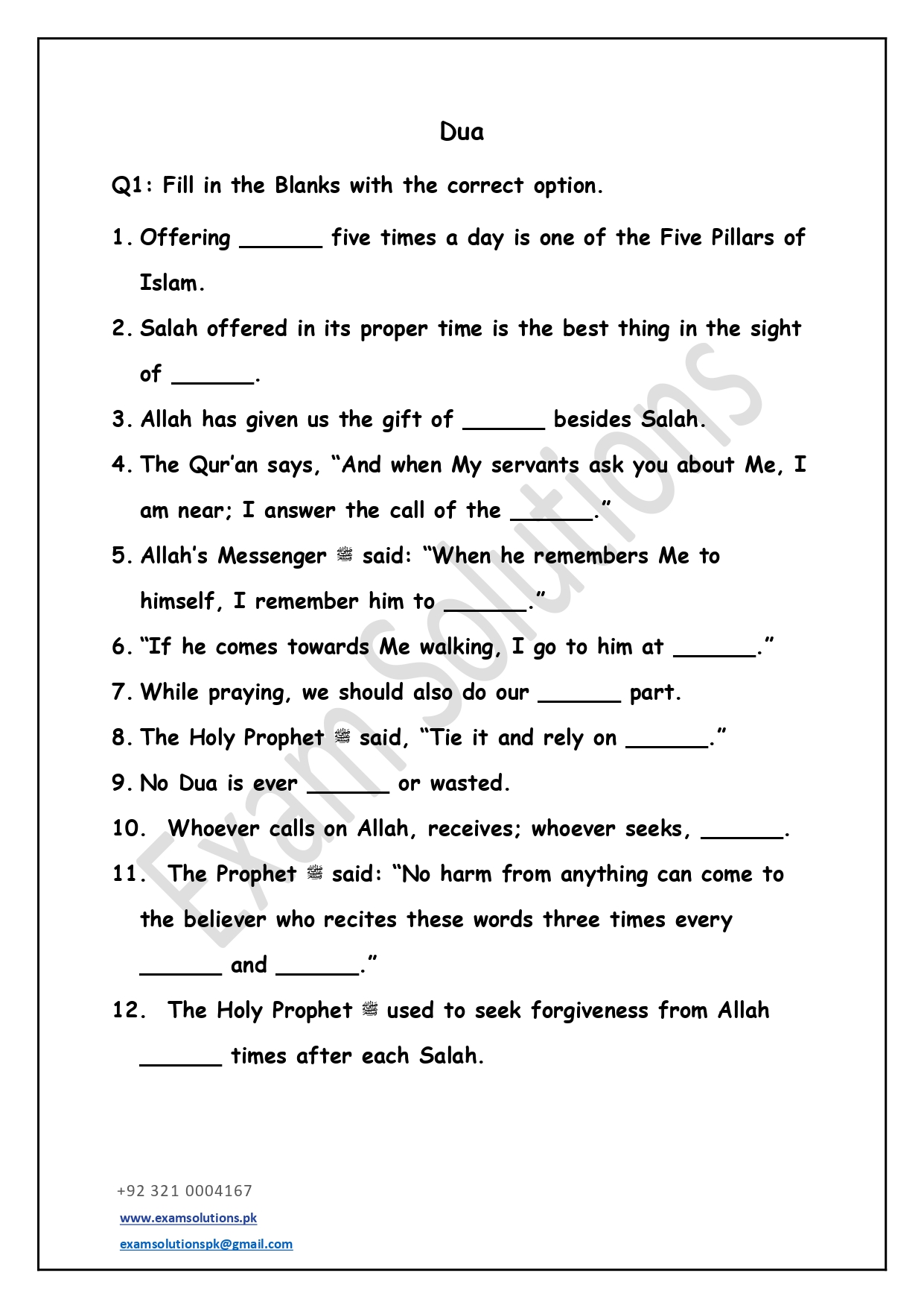 These worksheets are thoughtfully designed in accordance with exam-style question patterns to help students prepare effectively for Islamiat assessments. Each worksheet includes a balanced mix of multiple-choice, short-answer, and long-answer questions based on the Class 5 syllabus. The content promotes a clear understanding of Islamic teachings, values, and history while developing students’ confidence and exam readiness.